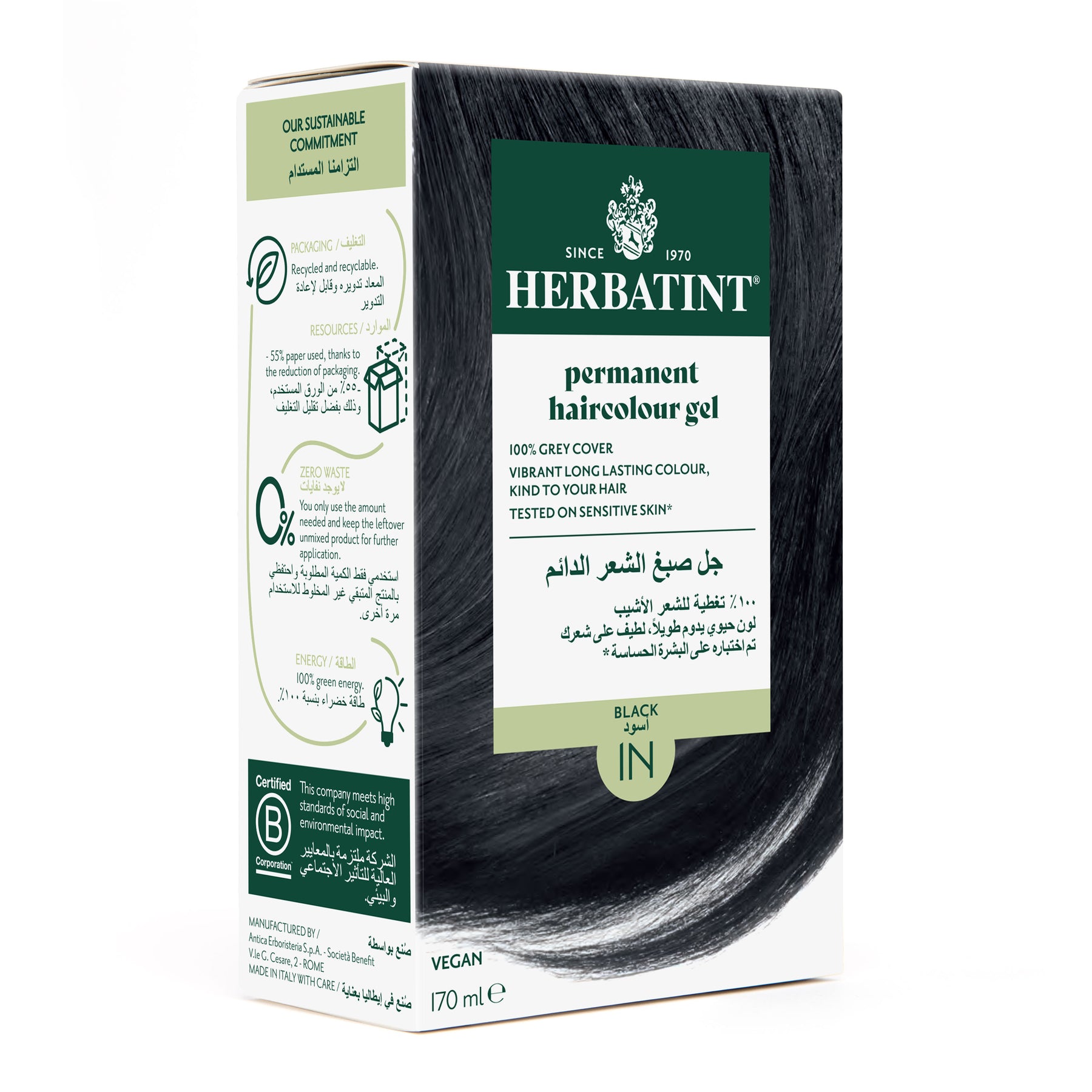 Herbatint, Permanent Haircolor Gel, 1N, Black 170ML
