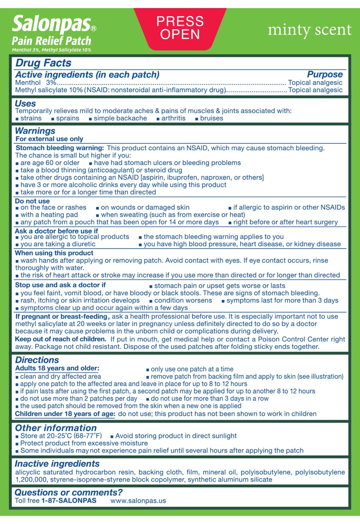 Salonpas Ultra Thin is a pain relief adhesive patch that contains medicated ingredients that penetrate into the affected area to soothe muscle and joint pain. Salonpas Ultra Thin, combined with menthol properties, is stretchable, breathable and easy to peel. Flexible materials to fit the application area. Leave no sticky residues when removed. Skin-tone color.